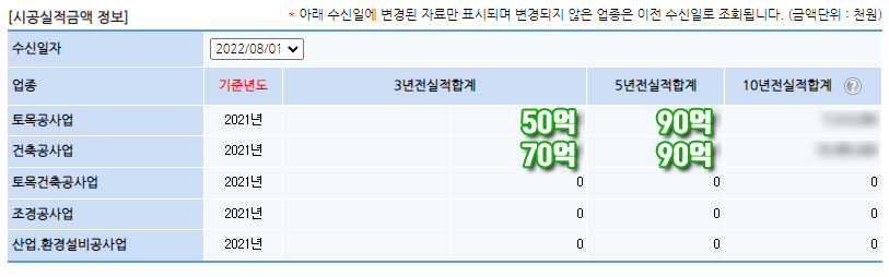 -4년 미만실적금액 : 2019년, 2020년, 2021년 (3년실적금액) + 2022.06.01~ 2022.08.21일까지 준공된 전체공사금액