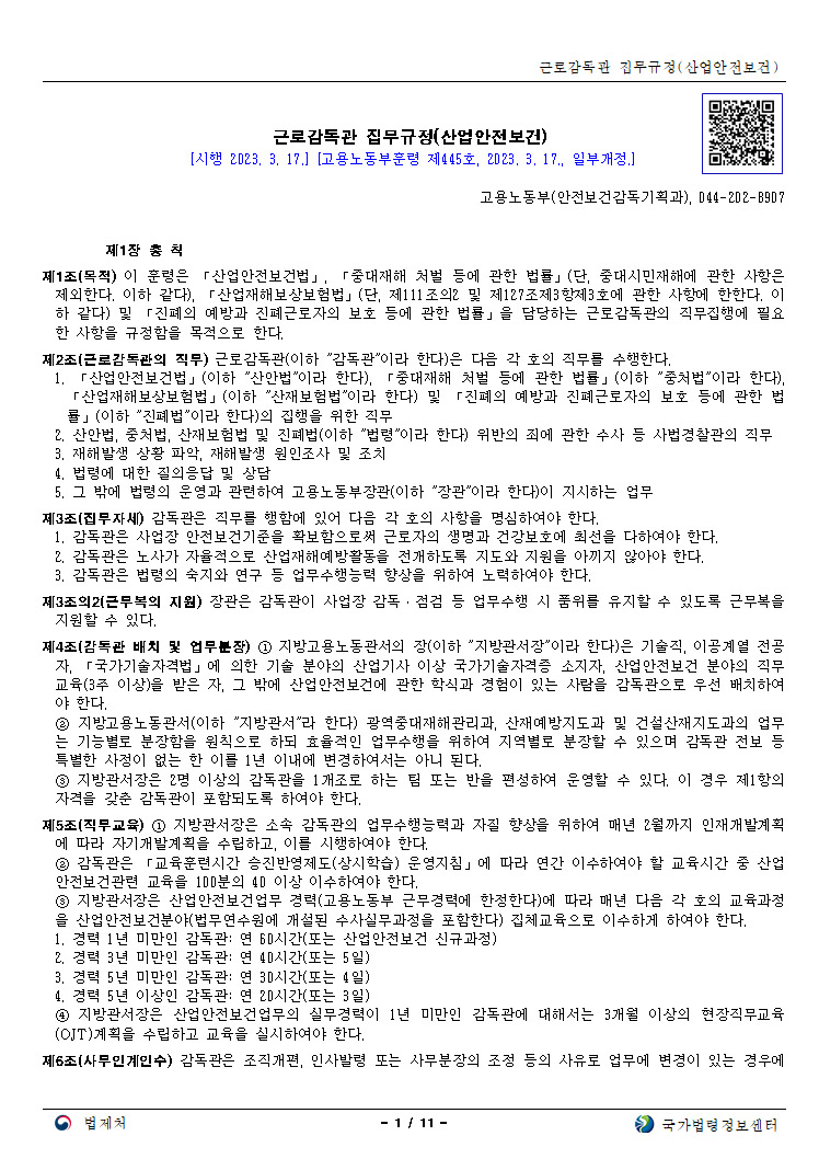 근로감독관 집무규정(산업안전보건) | 국가법령정보센터 | 행정규칙