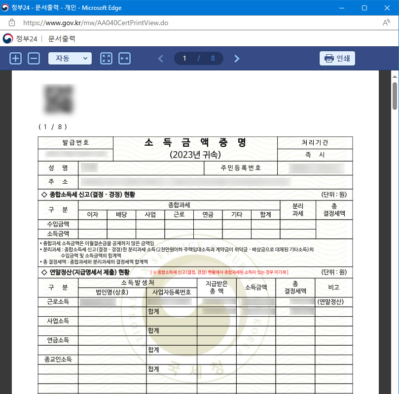 전문건설업 적격심사 제출서류중에 [소득금액증명원]이 포함되어 있어서