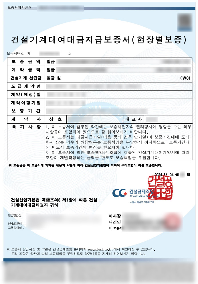 ※직불합의서를 작성을 제외하고는 현장별보증서나 계약별보증서를 발급해야 합니다.