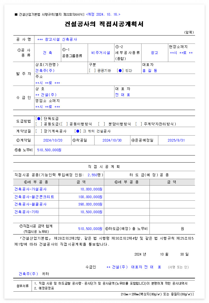 [별지 제22호의6서식] 건설공사의 직접시공계획서(건설산업기본법 시행규칙).hwp