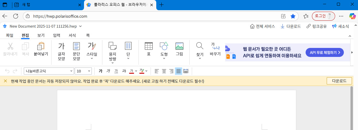 건설공사 사무실에서 폴라리스 오피스 웹 한글 사용하는 방법 (HWP 무료로 쓰는 법까지)