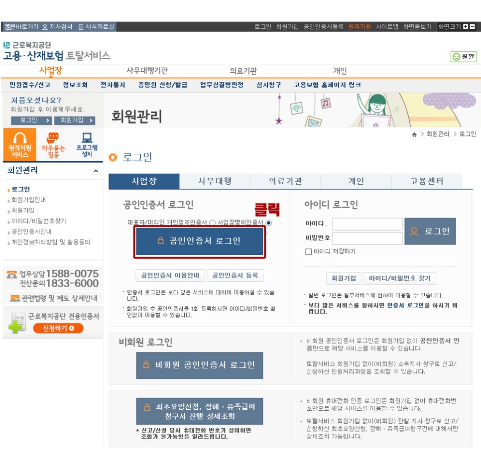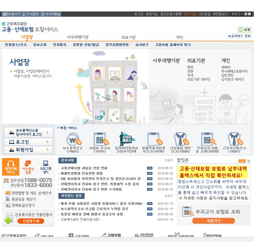 우선, 근로복지공단 홈페이지에 접속해 봅니다.