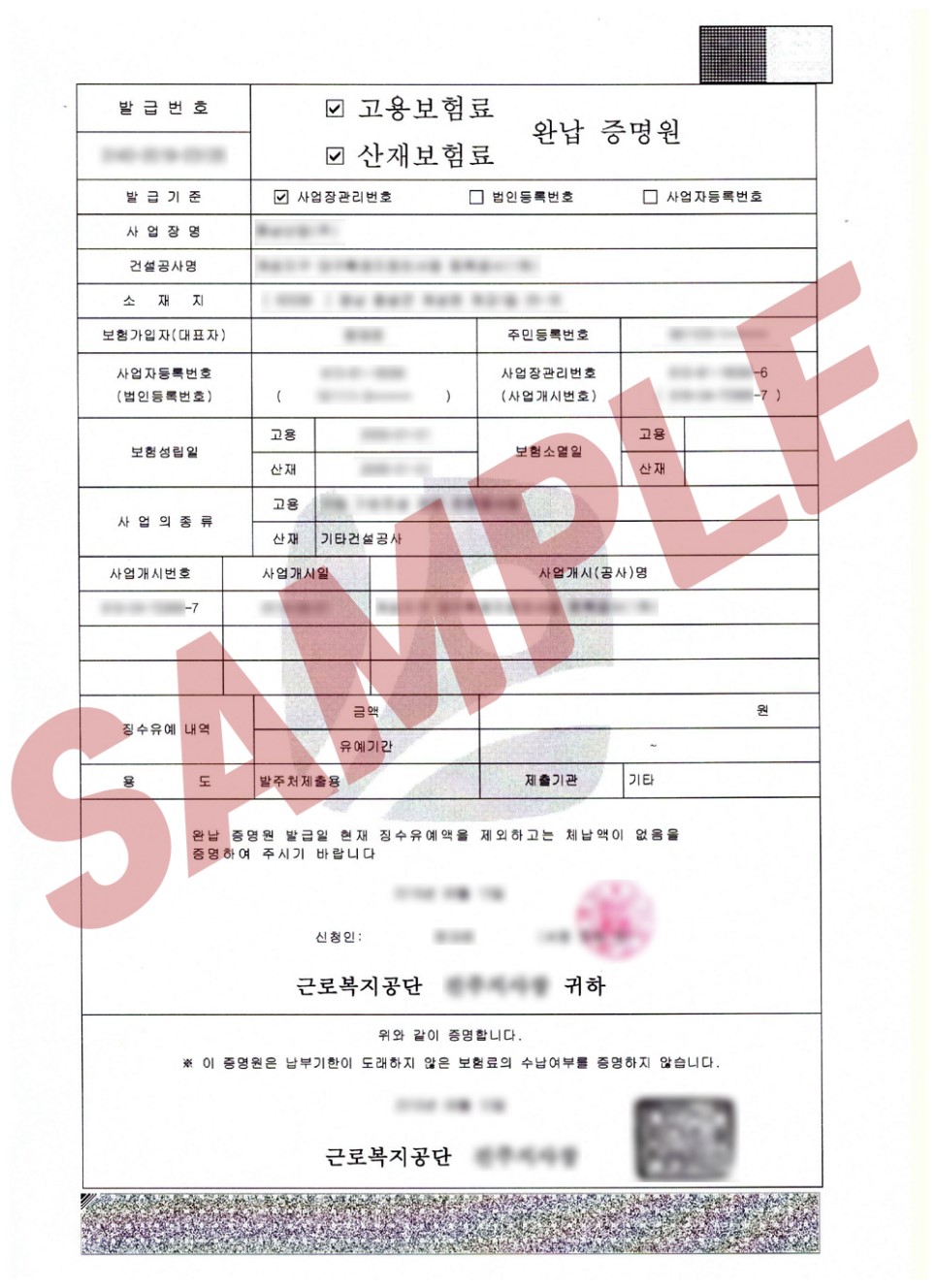 자주제출하는 서류중에... 고용산재 완납증명서가 있습니다.