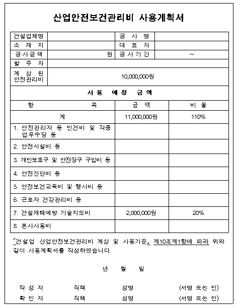 안전관리비 사용계획서에서